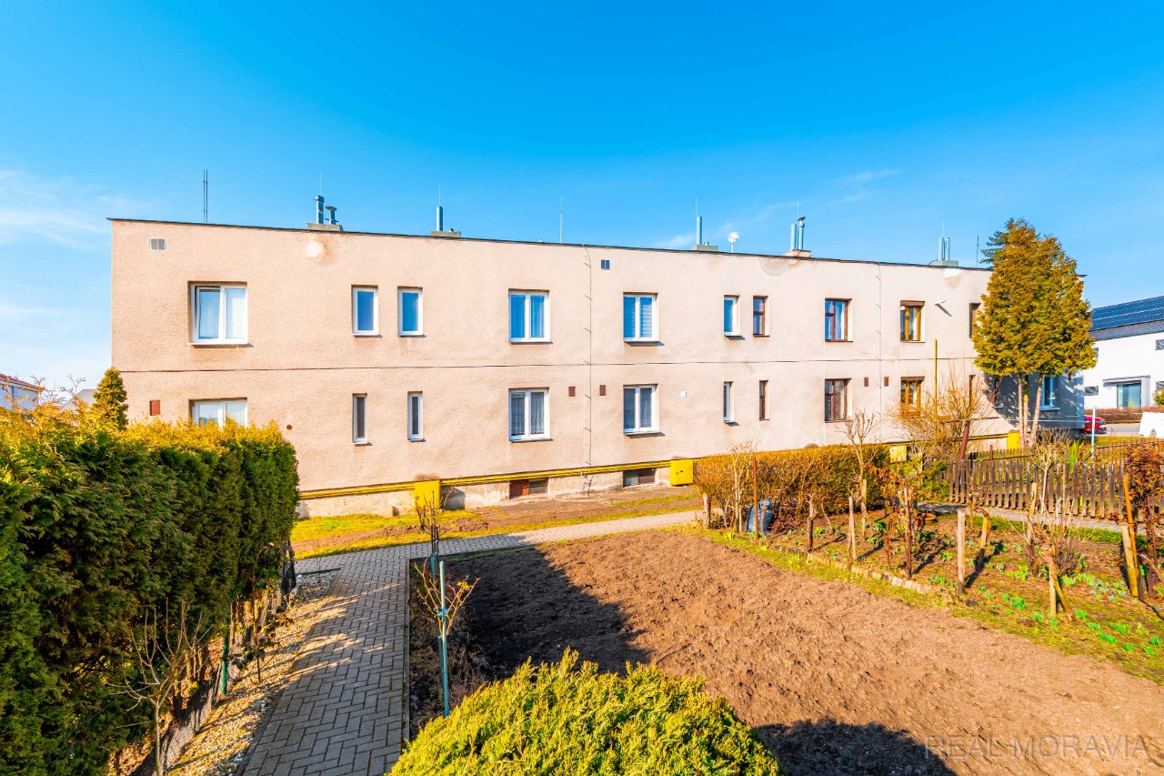 Nabízíme k prodeji prostorný byt 3+1 se zahradou a sklepem v menším cihlovém domě, v osobním vlastnictví, v Lutíně, 8 km od Olomouce. Bytový dům je samostatně stojící se 6 bytovými jednotkami. Každý byt má samostatný vchod z ulice a využívá část pozemku – zahrady. Byt je mezonetový, nachází se v přízemí a 1.patře dvoupodlažního bytového domu bez výtahu a má užitnou plochu 122,5 m² včetně vstupní verandy (2,12 m²) a sklepu v suterénu domu (41,69 m²). Dům byl postaven kolem r. 1940, je podsklepený, má 2 nadzemní podlaží. Dům je zděný a je po částečné revitalizaci: r. 2020 střecha vč. oplechování, r. 2018 nová plastová okna, r. 1986 napojení na plyn. V bytě proběhla výměna plyn. kotle v r. 2012, renovace koupelny a WC r. 2005 (obklady, dlažba, sanita), plovoucí podlaha. Elektro, odpady původní. V bytě se nachází vstupní veranda, předsíň, obývací pokoj, kuchyň s jídelním koutem (plynový sporák s el. troubou, dřez), samostatné WC s oknem, spíž, schodiště do patra. V 1.patře pak 2 průchozí pokoje, koupelna (umyvadlo, vana, místo na pračku, okno). Podlahy- v koupelně a WC dlažba, v obývacím pokoji a kuchyni plovoucí podlaha, v pokojích koberce. Elektroinstalace a vnitřní dveře původní. Dům je napojen na tyto IS – el., plyn, obecní vodovod, obecní kanalizace. Vytápění – ústřední, plynový kotel (vlastní kotelna ve sklepě). Ohřev vody – plynový bojler. Internet optika. V suterénu domu velký sklep (41,69 m²), kde v části je umístěna vlastní kotelna s plynovým kotlem, další část slouží jako úložný prostor. K bytu patří menší oplocená část pozemku, který slouží jako zahrada (cca 84 m²). Na zahradě voda, zásuvka, el. 380. Parkování na pozemku nebo na ploše před pozemkem. Měsíční náklady – 4 390 Kč. Úvěr na revitalizaci splacen. Orientace zahrady Z. Internet, TV anténa. V obci bus, MŠ, ZŠ, obchody, lékaři, pošta, restaurace, hřiště, veškerá občanská vybavenost. Nezáplavová oblast. Volné ihned. Cena vč. právního servisu a provize RK. Majitel si vyhrazuje právo rozhodnout podle svých kritérií, s kým uzavře kupní smlouvu v případě více zájemců. Kompletní informace o stavu nemovitosti obdržíte u makléře, uvedené údaje jsou pouze informativní. Energetický průkaz budovy nebyl vyhotoven, proto je v inzerci uváděna hodnota G.